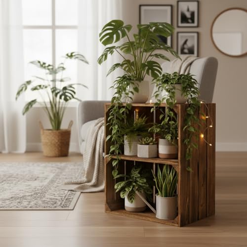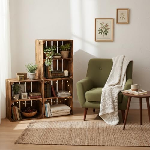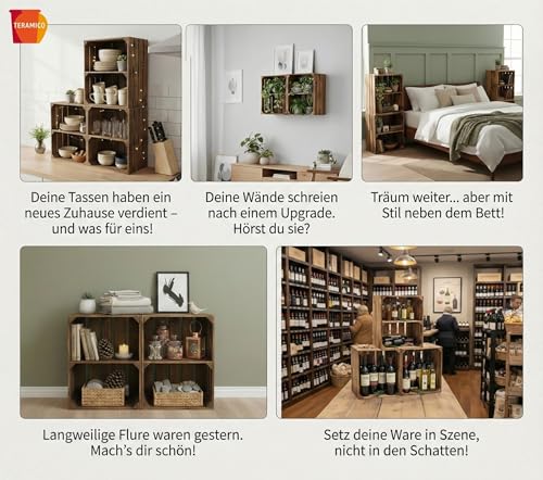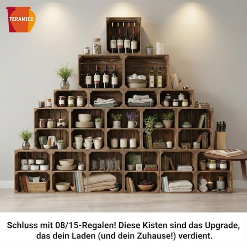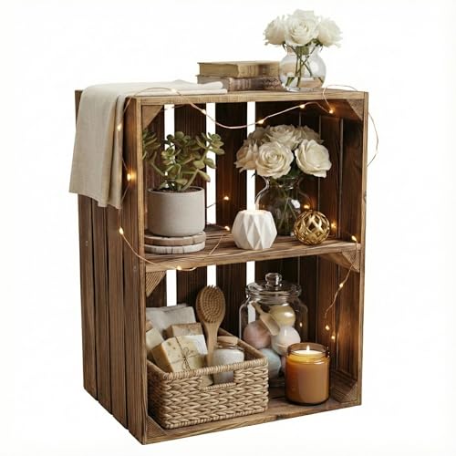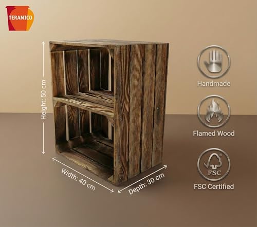 Teramico - صناديق خشبية صلبة كرف احذية - خزانة كتب من تيراميكو ملتهبة بشكل خفيف مع رف متوسط برغي صندوق تفاح فواكه نبيذ الريف ديكور عتيق بني