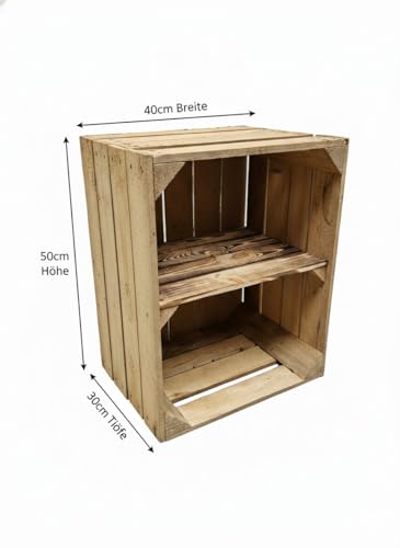 Teramico - اقفاص خشبية مستعملة فينتاج من تيراميكو / اقفاص فاكهة / اقفاص النبيذ الاصلية لزراعة الفاكهة مع مساحة تخزين ملتهبة 50 × 40 × 30 سم (1 × رف قصير)