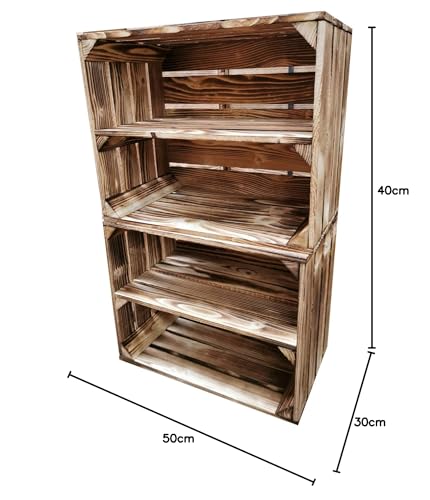 Teramico - صندوق خشبي من تيراميكو، بتصميم مظهر كلاسيكي ملتهب – مجموعة صندوق فاكهة لتزيين صندوق، 50 × 40 × 30 سم (مفرد – صندوق، رف طويل)