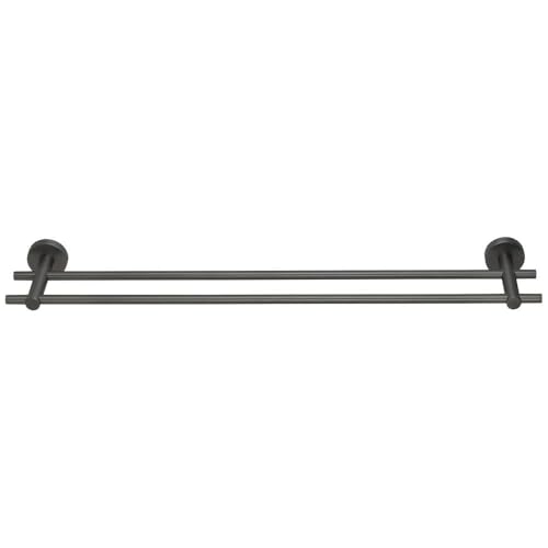 Tesa - تيسا حامل مناشف مزدوج من مون من الجرافيت المصقول - حامل مناشف ذاتي اللصق مع قضيبين - مصنوع من معدن مطلي بمادة بي في دي - بدون ثقب - يتضمن محلول لاصق - 112 ملم × 640 ملم × 50 ملم