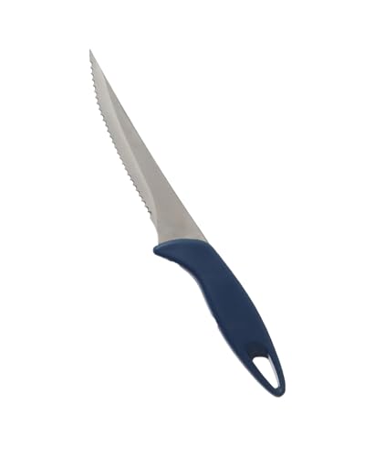 Tescoma - سكين ليزر مسنن من الفولاذ المقاوم للصدأ بمقبض بلاستيكي من تيسكوما، 12 سم، أزرق