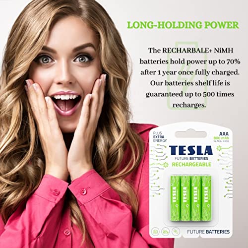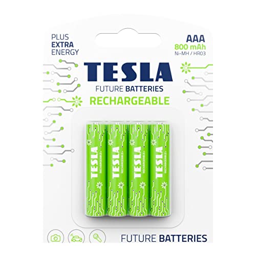 TESLA - بطاريات قابلة لإعادة الشحن نوع ايه ايه ايه بجهد 1.2 فولت وسعة 800 مللي امبير في الساعة من تيسلا، عبوة من 4 بطاريات