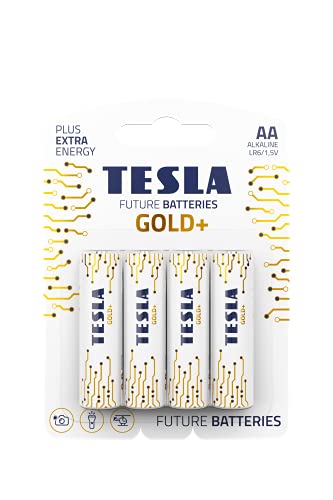 TESLA - بطارية قلوية AA جولد قلم LR06 بعبوة بلاستيك من 4 قطع من تيسلا