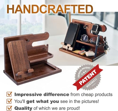 Teslyar - قاعدة شحن خشبية للموبايل من تيسليار، مزودة بمساحات لتنظيم الساعات وحامل للمحفظة، مناسبة للزوج والزوجة والاب والصديق في الذكرى السنوية وعيد الميلاد وحفلات التخرج