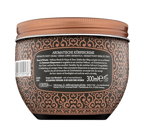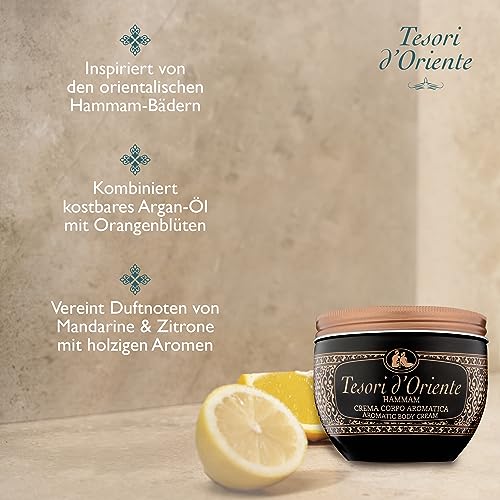 Tesori d´oriente - كريم الجسم دورينت "همام" من تيسوري، 300 مل، لوشن معطر للجسم بزيت الارغان وزهر البرتقال، كريم مرطب للعناية بالجسم، طقوس صحية للجسم والحواس