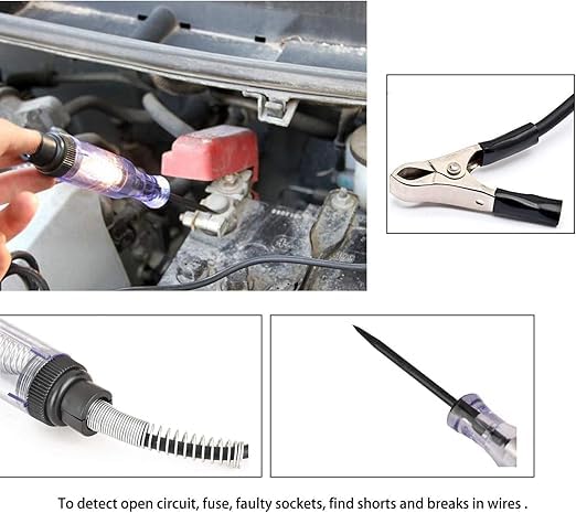 - ✅ قلم قياس الدائرة الكهربائية للاسلاك الكهربائية بالسيارات مثالي لفحص الدوائر والفيوزات والمفاتيح والأسلاك في السيارات والمقطورات والقوارب والموتوسيكلات وأنظمة الجهد المنخفض الأخرى.