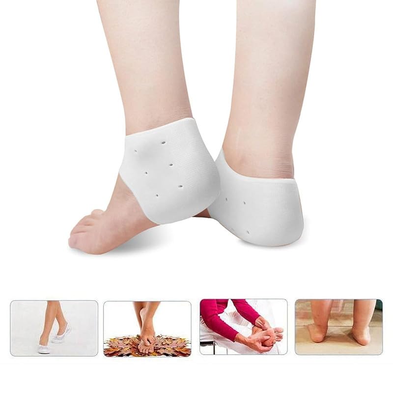 - حماية سيليكون لتقويم العظام: استفد من واقيات الكعب المصنوعة من السيليكون لتقويم العظام التي تحمي عظم الكعب من الضغط الشديد والتعب والإجهاد. تمنع هذه الجوارب سماكة جلد الكعب، وتحمي من البثور والجلد المتشقق والذرة والأقدام المتشققة. بالإضافة إلى ذلك، فهي توفر علاجًا مرطبًا للبشرة الجافة والمؤلمة والمتشققة، مما يساهم في تحسين المظهر من خلال تقليل الخطوط الدقيقة للشيخوخة.