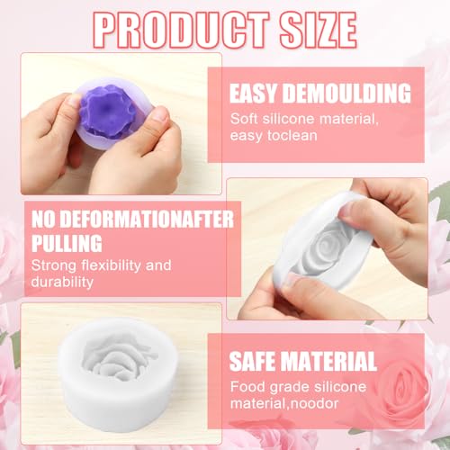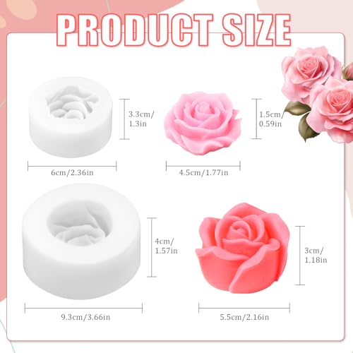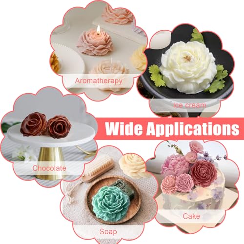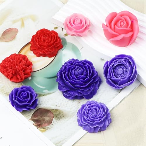 TEUYOE - قطعتان من قوالب الفاوانيا الكبيرة والصغيرة ثلاثية الابعاد من تيويو والقرنفل والورود والزهور، قوالب سيليكون لصنع الشموع وصنع الشوكولاتة لعيد الميلاد والذكرى السنوية (2 وردة)