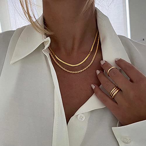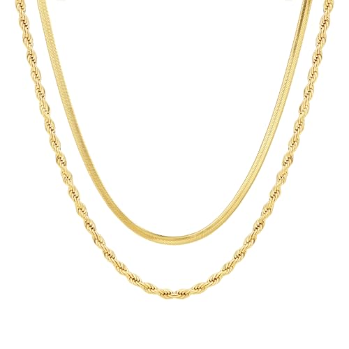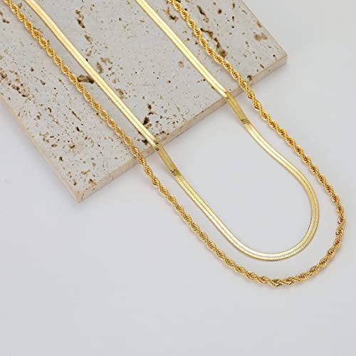 Tewiky - سلسلة متعرجة مرنة ثعبان مسطحة من تويكي مطلية بالذهب 14 قيراط مقاس 1.5 5 ملم للنساء 15 16 بوصة طول