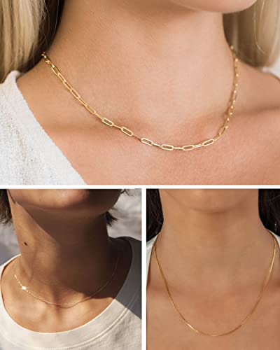Tewiky - سلسلة متعرجة مرنة ثعبان مسطحة من تويكي مطلية بالذهب 14 قيراط مقاس 1.5 - 5 ملم للنساء - 15 - 16 بوصة طول معدن