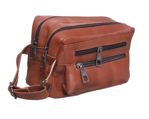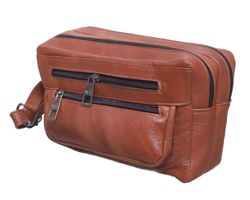 Texas West - شنطة يد كبيرة من الجلد الطبيعي مع 5 سحابات للرجال من تكساس 12 -