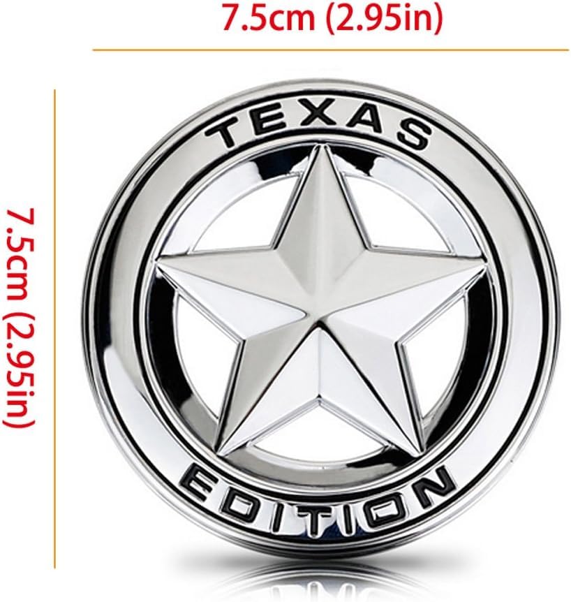 Generic - شعار نجمة تكساس ثلاثي الابعاد معدني من الكروم المعدني لسيارات الدفع الرباعي والشاحنة الجانبية والخلفية (فضي) - من كابر تريد