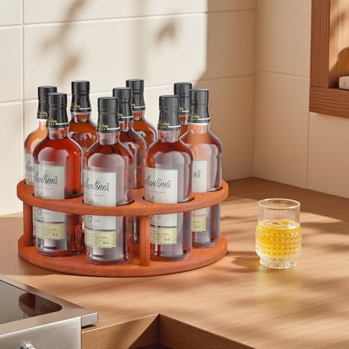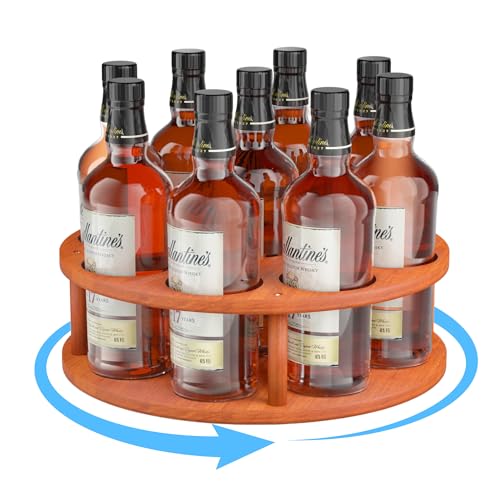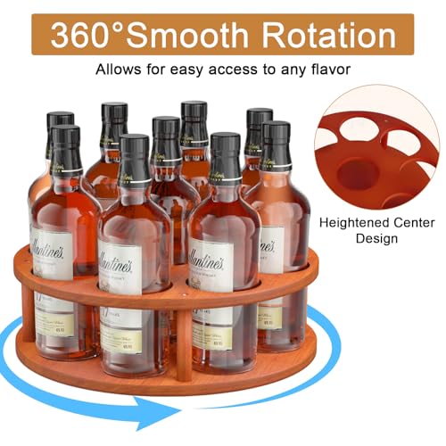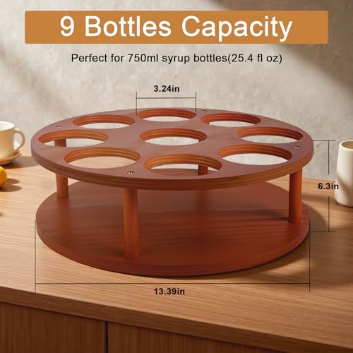 texinpress - منظم شراب القهوة الدوارة، رف شراب القهوة 9 زجاجات لسطح الطاولة، حامل زجاجات شراب من خشب الصنوبر، حامل لمحطة القهوة، صينية عرض النبيذ الدوارة