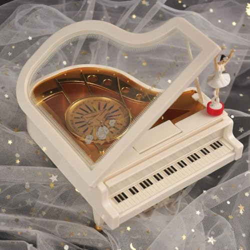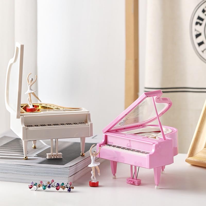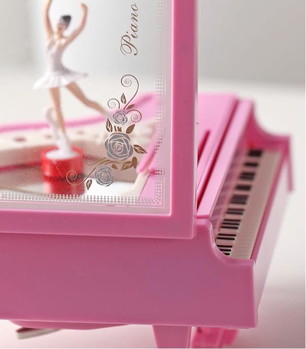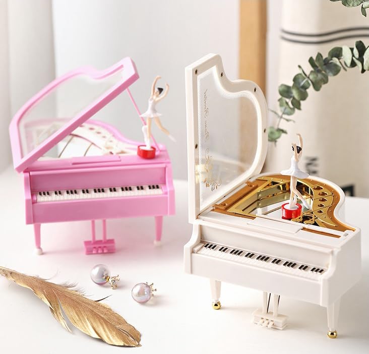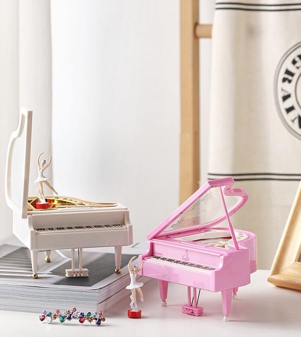 - صندوق موسيقى بيانو من تيكسون راقص، ميكانيكي آلي باليرينا، زخرفة جميلة للفتيات (الوان متعدده ابيض وروز)