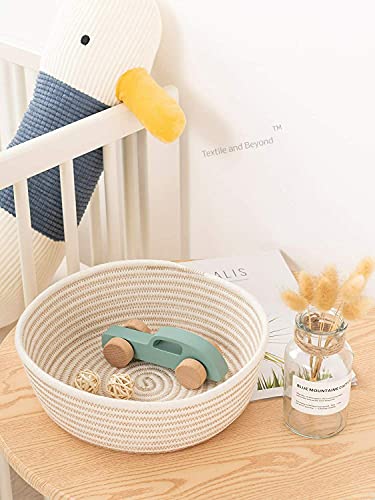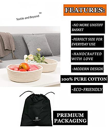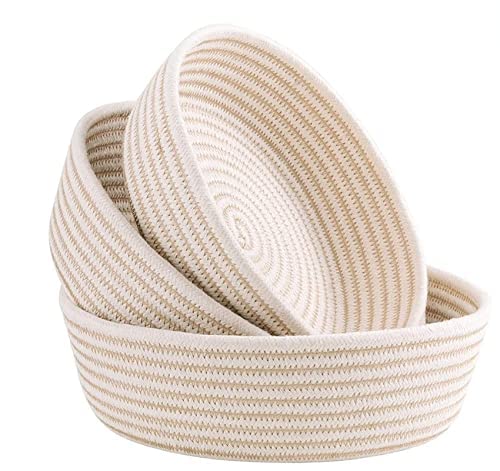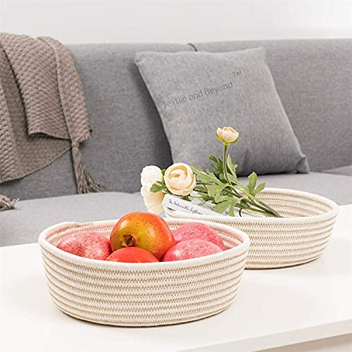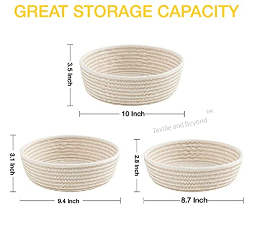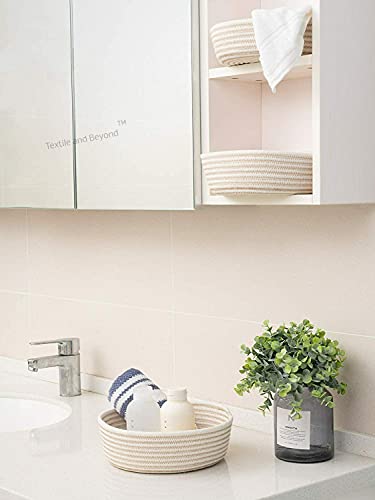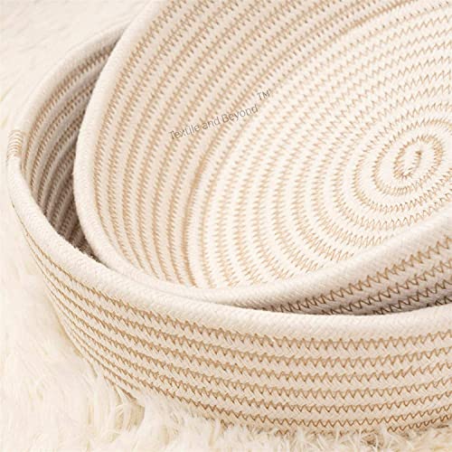 Textile and Beyond - علب تخزين دائرية صغيرة، سلال غسيل قطنية لتخزين الورق، سلة بنية لغرفة الأطفال، منظم لألعاب الأطفال والفاكهة لغرفة المعيشة والمطبخ، مجموعة المكتب من تيكستايل اند بيوند، مجموعة من 3 قطع، 02