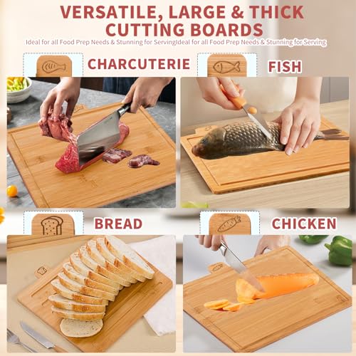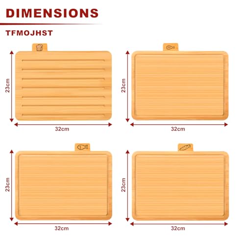 TFMOJHST - لوح تقطيع من الخيزران مع حامل، ألواح تقطيع من الخيزران للمطبخ مع مؤشرات تصنيف متنوعة لتقطيع اللحوم والفواكه والخضروات، أداة مطبخ مثالية من TFMOJHST، مجموعة من 4 قطع