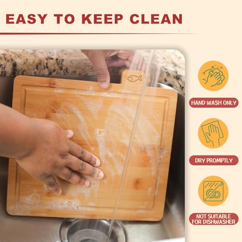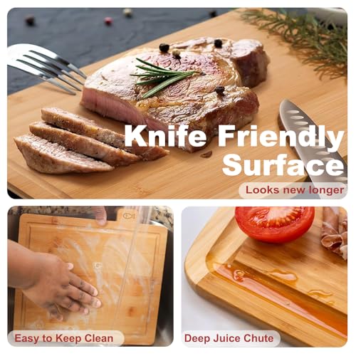 - يسهل الحفاظ عليه: لوح التقطيع المصنوع من الخيزران العضوي الخاص بنا جميل ومتين للغاية، سهل التنظيف والصيانة، ما عليك سوى غسله يدويًا بصابون خفيف وماء دافئ، ببساطة امسحه وسيجف بسرعة دون الاعوجاج أو التشقق. يلتقط وعاء السوائل المدمج جميع السوائل بفاعلية، ويمنع الانسكابات ويحافظ على نظافة سطح الطاولة. كما أن السطح الأملس للوح التقطيع المصنوع من الخيزران أكثر ملاءمة للسكاكين.