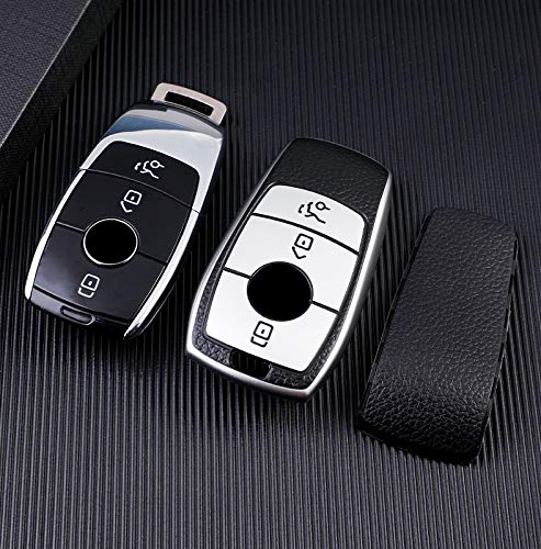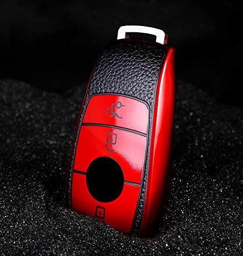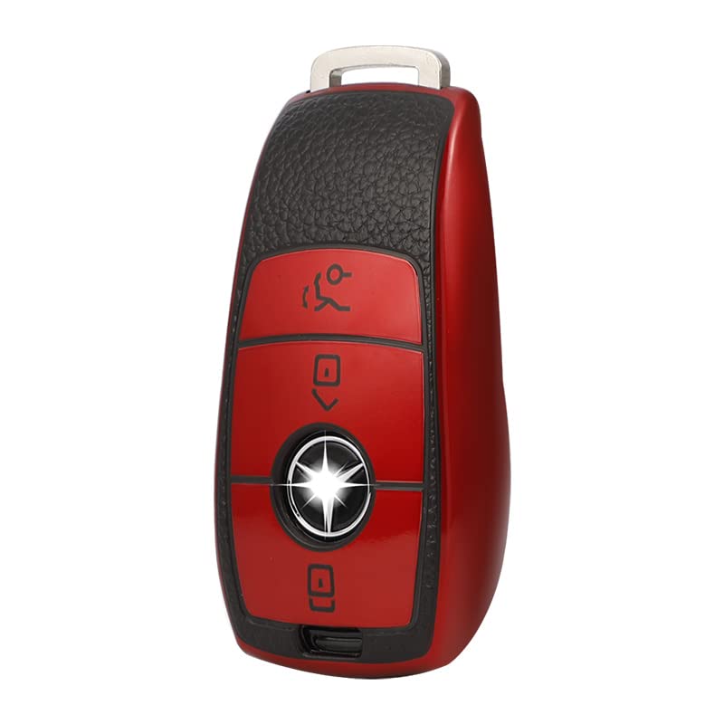 TG Auto - جراب مفتاح الامان الذكي من تي جي اوتو بدون بولي يوريثين مقاوم للحرارة ناعم بنمط جلد فاخر هيكل بغطاء فضي لسيارة مرسيدس بنز 2016-2020 فئة C E M S CLS CLK GLK GLC G كلاس W213 احمر أحمر