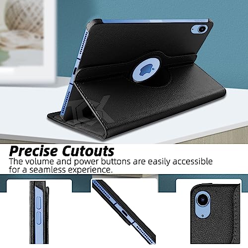 TGK - جراب جلد دوار 360 درجة من تي جي كيه لجهاز ايباد الجيل العاشر 10.9 بوصة (أسود)