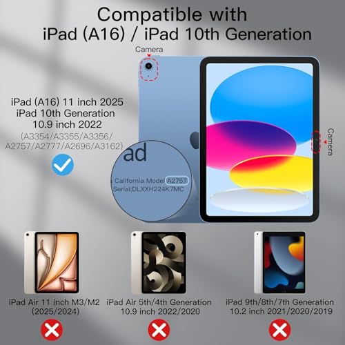 - 【التوافق】- مصمم حصريًا للتوافق مع ايباد اير الجيل العاشر موديل 10.9 بوصة (الموديل: A2696، A2757، A2777، MQ6L3HN/A، MQ6J3HN/A، MQ6M3HN/A، MQ6K3HN/A)، غير متوافق مع موديلات ايباد الأخرى. تتيح الوصول إلى جميع المزايا وأزرار التحكم. يرجى التحقق من الجزء السفلي الخلفي لجهاز اي باد الخاص بك للعثور على رقم الموديل