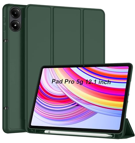 TGK - جراب حماية ثلاثي الطي مزود بحامل قلم لتابلت ريدمي باد برو مقاس 12.1 بوصة من تي جي كيه (لون أخضر)