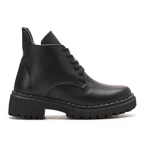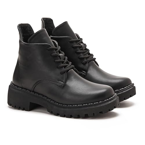 TGS - بوت بطول الكاحل بأربطة وكعب عريض للنساء من تي جي اس