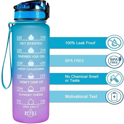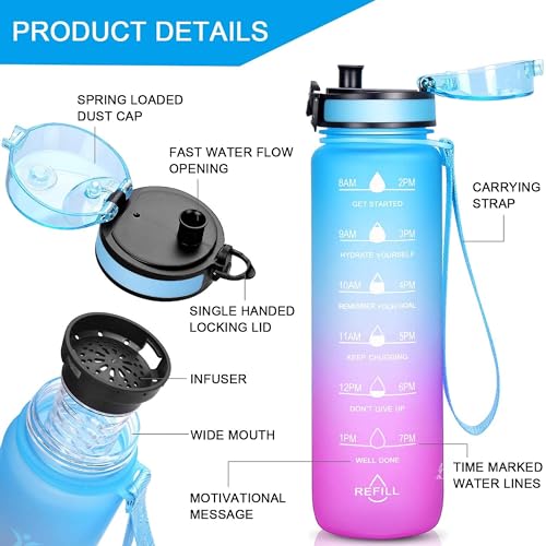 - اقتباسات تحفيزية ومؤشر للوقت = زجاجة مياه بسعة 32 أونصة مع اقتباس تحفيزي فريد ومؤشر للوقت، أصبح أسهل الأن من أي وقت مضى شرب الكمية المثالية من الماء يوميًا. يعد الاقتباس الملهم دافعًا كبيرًا لأي هدف للياقة البدنية بما في ذلك فقدان الوزن واكتساب المزيد من العضلات وتتبع شرب الماء أثناء التخلص من السموم أو الحمل