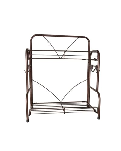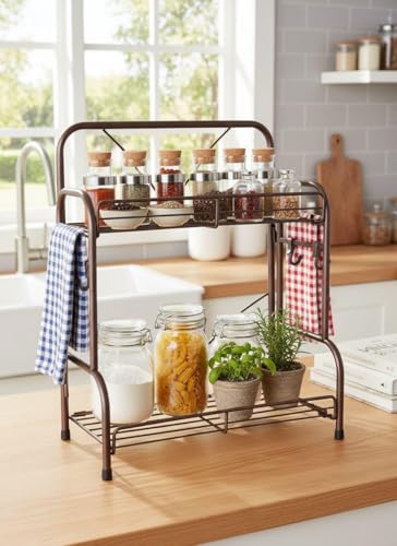 - تصميم من مستويين: يزيد من مساحة التخزين الرأسية على أسطح الطاولات أو الخزانات أو خزانات المؤن. هيكل معدني متين: مصنوع من مواد متينة عالية الجودة للاستخدام طويل الأمد. لمسة نهائية برونزية جذابة: يتميز بلون بني كلاسيكي جذاب يناسب معظم الديكورات. استخدام متعدد الأغراض: مثالي لتوابل المطبخ أو مستلزمات الحمام أو لوازم طاولة القهوة أو التنظيم العام. خطافات جانبية مدمجة: يتضمن خطافات عملية لتعليق الأشياء الصغيرة مثل الأواني أو الفوط أو الفرش.