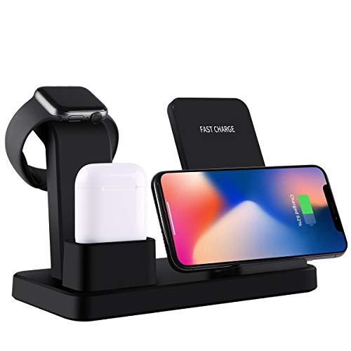 Other - شاحن لاسلكي 3 في 1 الذكي لاجهزة ابل يشمل السماعه والايفون والساعه جودة عاليه وتصميم عملي جزاب، اسود