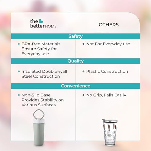 - ودع الانسكابات العرضية والأكواب المفتوحة! قاعدة شفط فريدة من نوعها تثبت بإحكام على أي سطح، حتى في حاملات أكواب السيارة في الطرق الوعرة والمكاتب المتذبذبة. استمتع باللاتيه أو الشاي أو السموذي بشكل مريح (ومساحة عمل نظيفة).
