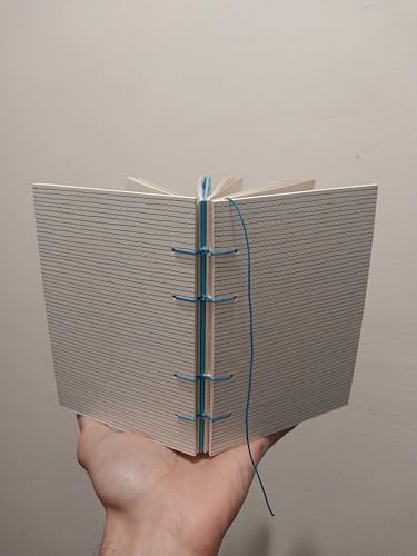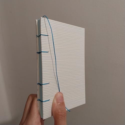 نوت بوك مقاس A5 مصنوع يدويا مجلد بخيط أزرق ذا بلو لاينز، ورق كريمي وأزرق، 90 صفحة، مرسوم ومجلد يدويا