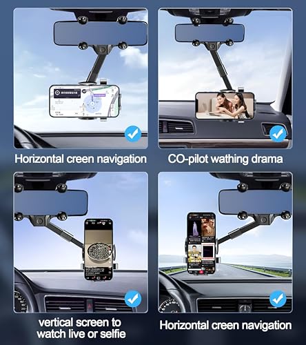 - مزود بأربعة مقابض قابلة للسحب، يتم تثبيت حامل الموبايل بأمان بمرآة الرؤية الخلفية بسيارتك، مما يوفر الثبات. سواء كنت تتنقل في الطرق السريعة الملساء أو الطرق الجبلية الوعرة، فإن الحامل يحافظ على موبايلك ثابتًا في مكانه، مما يمنعه من السقوط للأمام ويضمن إعدادًا متوازنًا يعزز تجربة القيادة.