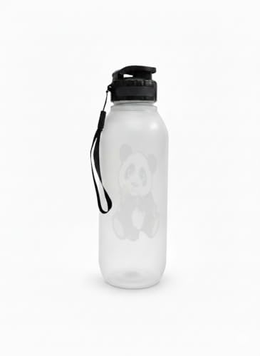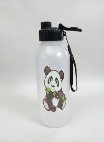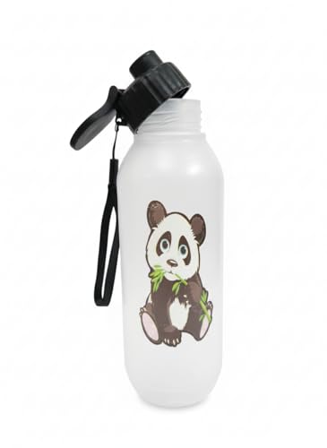 Generic - زجاجة مياه بلاستيك (باندا) - نوع الغطاء القلّاب - مزودة بحزام يد اسود لسهولة الحمل والتعليق - قارورة باندا - زجاجة باندا اللطيفة - قلاب - حزام حمل اسود / حبل قصير متصل بالرقبة