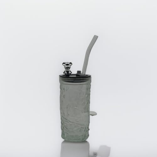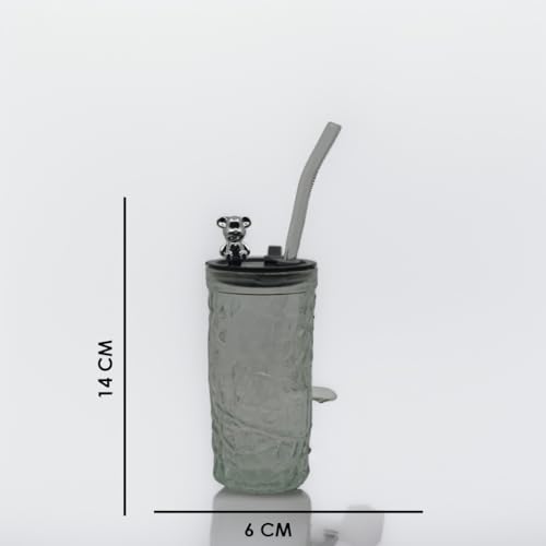 The Decor Lane - كوب زجاجي مزخرف مع شفاطة وغطاء دب لطيف، كوب مانع للتسرب للاطفال والكبار من ذا ديكور لين، 10 سم