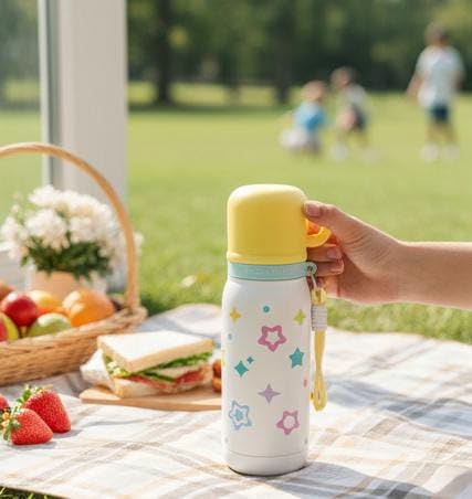 - مظهر جذاب وعصري: تتميز بطباعة نجمة ملونة على قاعدة بيضاء، مع غطاء أصفر ومقبض سهل الحمل