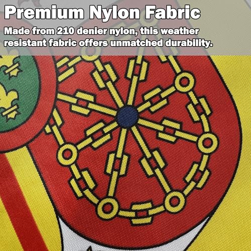 - حجم العلم: 5 قدم × 3 قدم (150 × 90 سم)