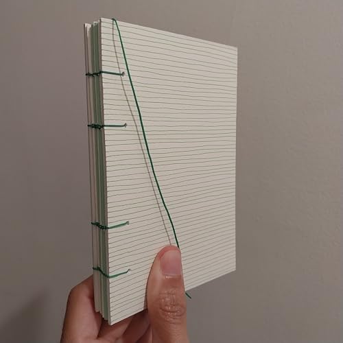 دفتر ملاحظات A5 مصنوع يدويًا من ذا جرين لاينز، ورق كريمي واخضر، 90 صفحة، مرسوم يدويًا ومثبت يدويًا