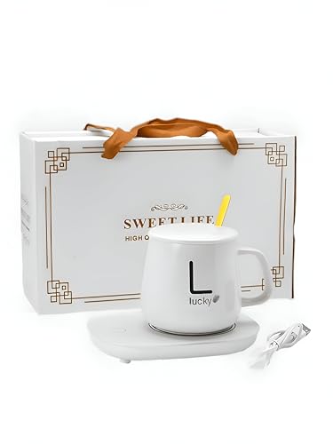 Generic - سخان وكوب حراري - سخان قهوة كهربائي لتسخين الشاي للحفاظ على درجة حرارة مثالية للمشروبات الساخنة، مصمم للاستخدام المكتبي والمنزل (ابيض)