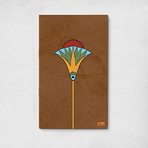 Generic - دفتر ملاحظات ذا انكجيكشن V050L بغلاف مزين بتصميم عصا فرعونية بلون بني مع ورق مسطر بحجم جواز السفر