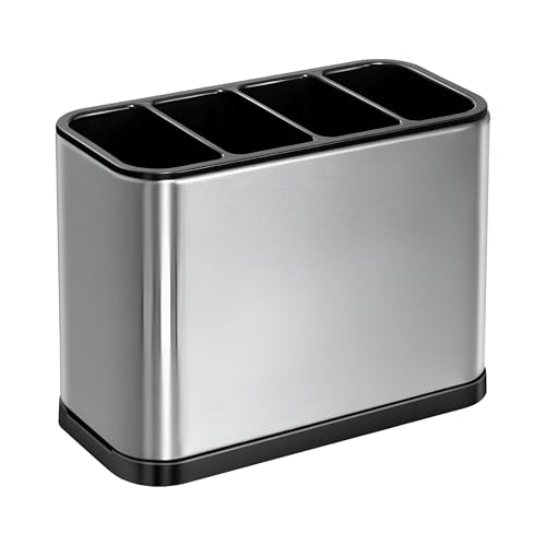 - يتميز حامل الأدوات المصنوع من الستانلس ستيل بأربع مساحات تخزين مميزة لتنظيم الملاعق والشوك والسكاكين والملاعق المسطحة والخفاقات وأدوات المطبخ الأخرى، مما يضمن الوصول السريع وسطح طاولة خالٍ من الفوضى.