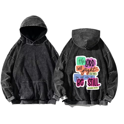 Generic - سترة بقلنسوة مطبوع عليها The LORD will fight FOR YOU You needonly to BE STILL مغسولة