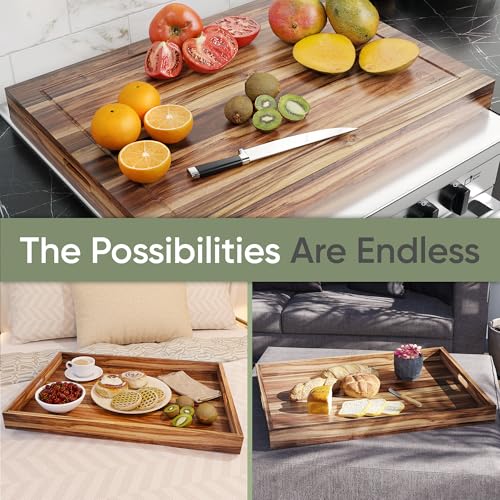 - قدمي الأطباق بأمان وتخلص من خطر سقوط الطعام مع الحواف المرتفعة للوحة الغطاء العلوي للموقد الخشبي. سواء كنت مضيفًا أو تدير مطبخًا مزدحمًا أو تضيف ديكور، فإن هذا اللوح مثالي! للحصول على لوح تقطيع خشبي مع مقبض، انقر فوق "أضف إلى العربة"!
