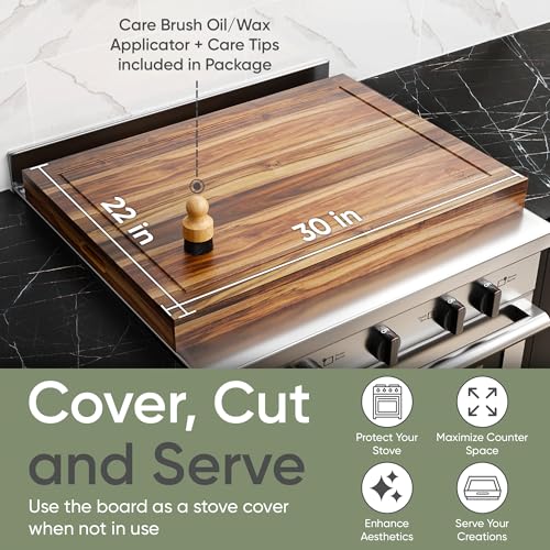 - قم بتوسيع مساحة الطهي الخاصة بك مع غطاء لوح التقطيع العلوي للموقد بمقاس كبير 30 انش × 22 انش. يمكنك تحويل غطاء الموقد العلوي الخشبي هذا إلى صينية تقديم أنيقة لمناسباتك أو قطعة مركزية أنيقة لطاولة القهوة، مثالية لعرض الكتب والنباتات