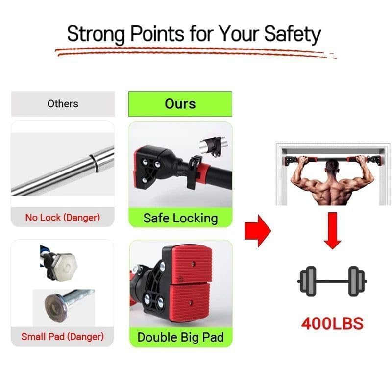 - 🔥🔥تمرين الجزء العلوي من الجسم متعدد الاستخدامات: يوفر قضيب السحب مجموعة واسعة من التمارين لتقوية الجزء العلوي من الجسم، بما في ذلك تمارين السحب والعقلة ورفع الساق المعلقة.