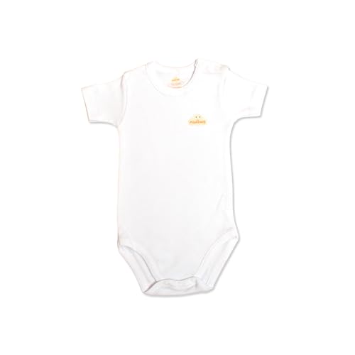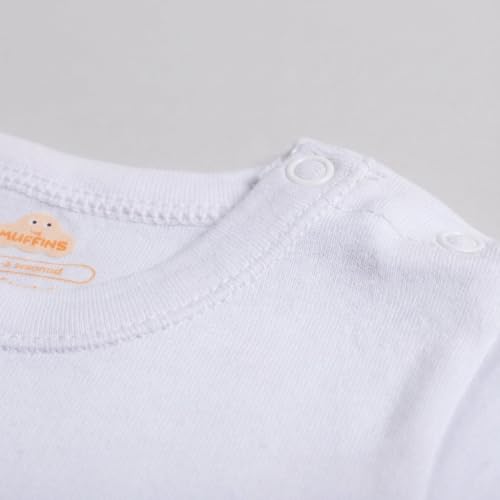 The Muffins - سالوبيت بكباسين باكمام قصيرة للاطفال من ذا مافنز - قطن مصري 100% | ابيض مع شعار | ناعم وجيد التهوية ومضاد للحساسية | سهل الاغلاق | صنع في مصر