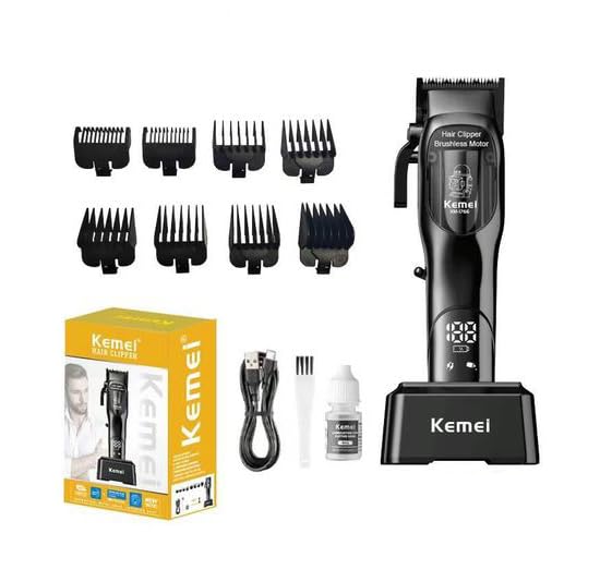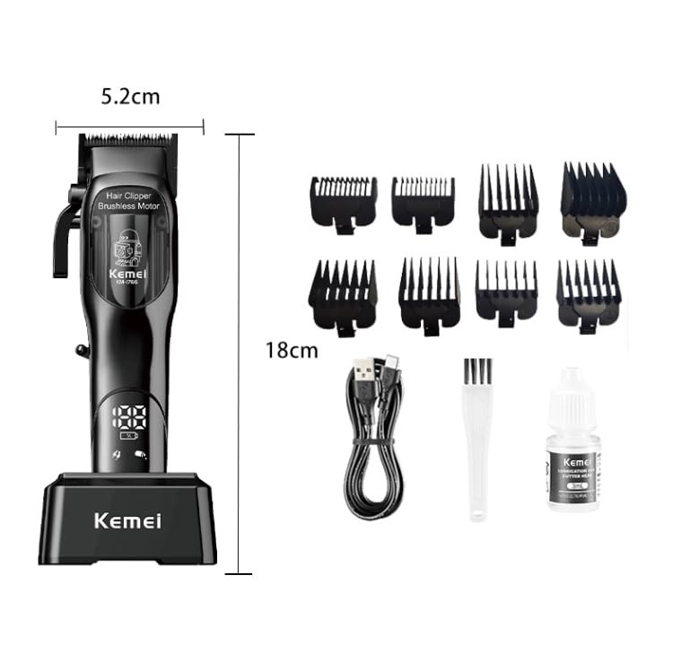 KEMEI - ماكينة حلاقة كهربائية عصرية بجودة احترافية بميزة قاعدة شحن وشاشة عرض رقمية وثمانية مرفقات من الأمشاط، وتعمل لمدة تصل إلى 200 دقيقة بشكل متواصل من كيمي، KM-1766