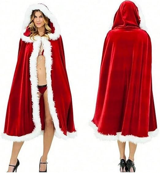 Generic - رداء من القطيفة بقلنسوة بتصميم سانتا كلوز للكريسماس للبالغين والأطفال من السيدات من ذا باك (مقاس L)