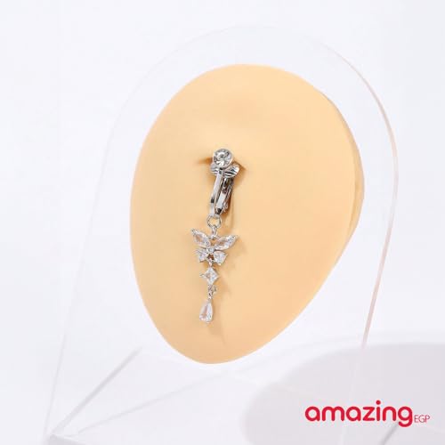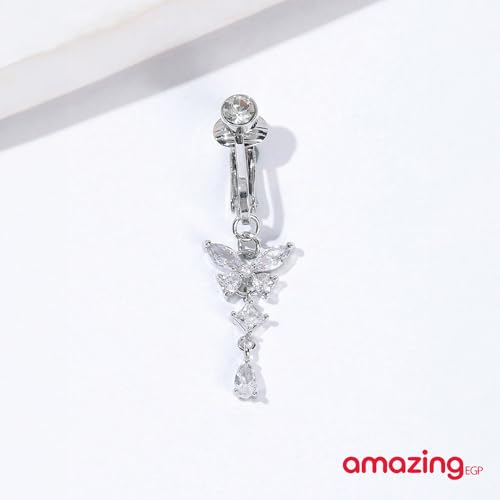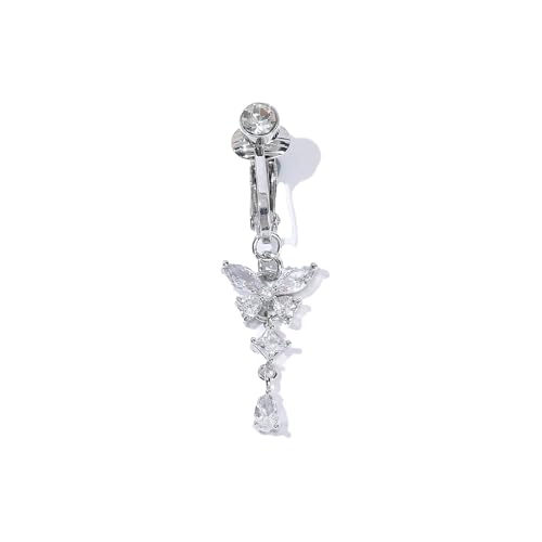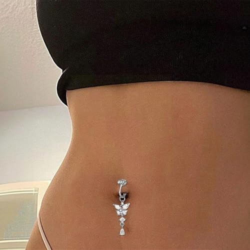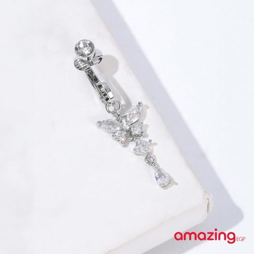 THE PACK - حلقة سرة البطن على شكل فراشة من الفولاذ الجراحي بتصميم دلاية من حجر الراين الفضي مع قفل بزر كبس من ذا باك