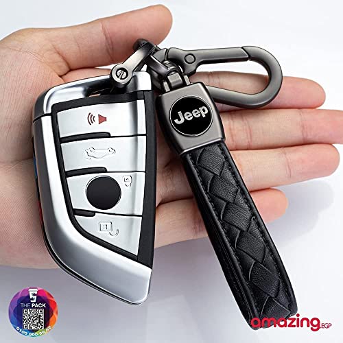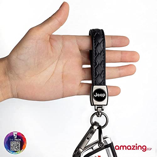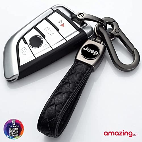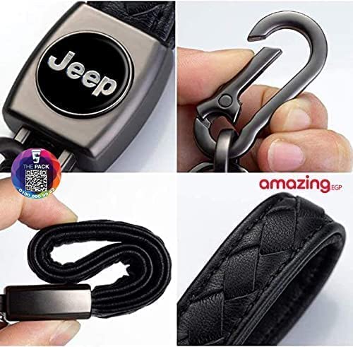 THE PACK - سلسلة مفاتيح معدنية مزينة بشعار سيارة من الجلد الاصلي ذا باك لسيارة جيب بنز للنساء والرجال (اسود)