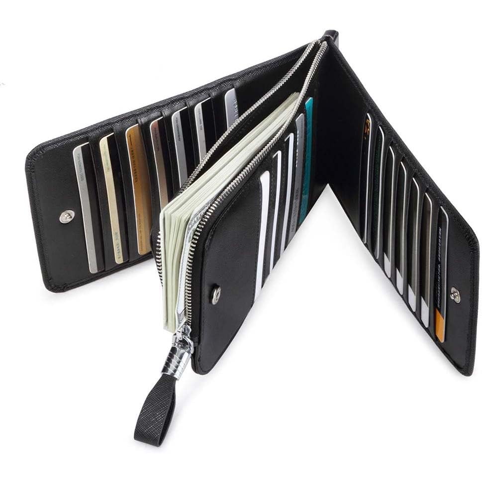 - ✨سعة البطاقات: ✨تتميز بـ 26 فتحة للبطاقات منظمة بتصميم فعال، مثالية لحمل جميع بطاقاتك وهوياتك الأساسية.